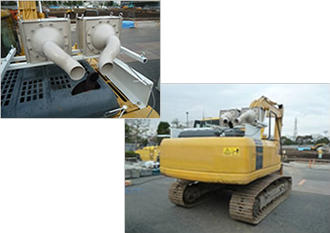 This device reduces the low frequency sounds caused by engines of construction machinery, with the aim of reducing the noise generated at construction sites and being considerate to neighbors.