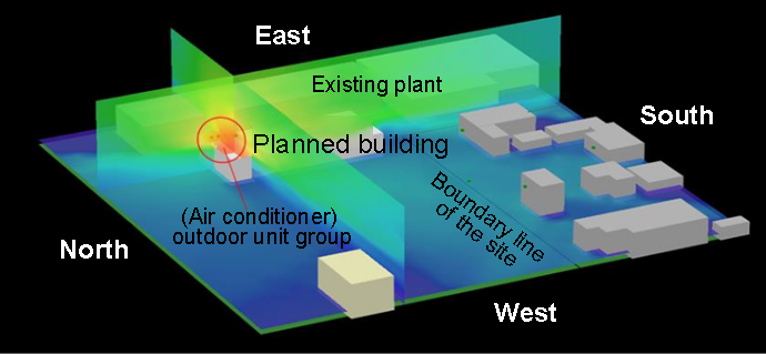 Noise generated by factories, rooftop equipment, construction, etc. may require consideration of countermeasures in order to satisfy the target value by predicting the noise propagation status around the boundary of the site.